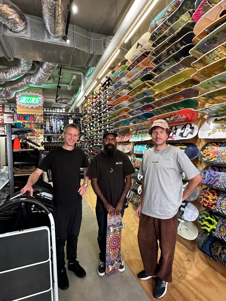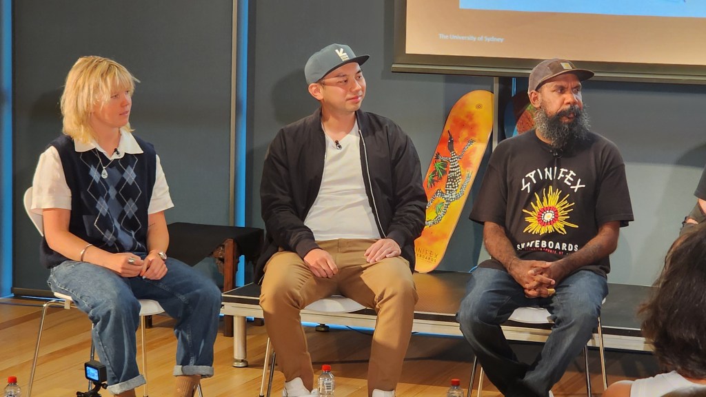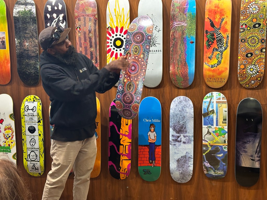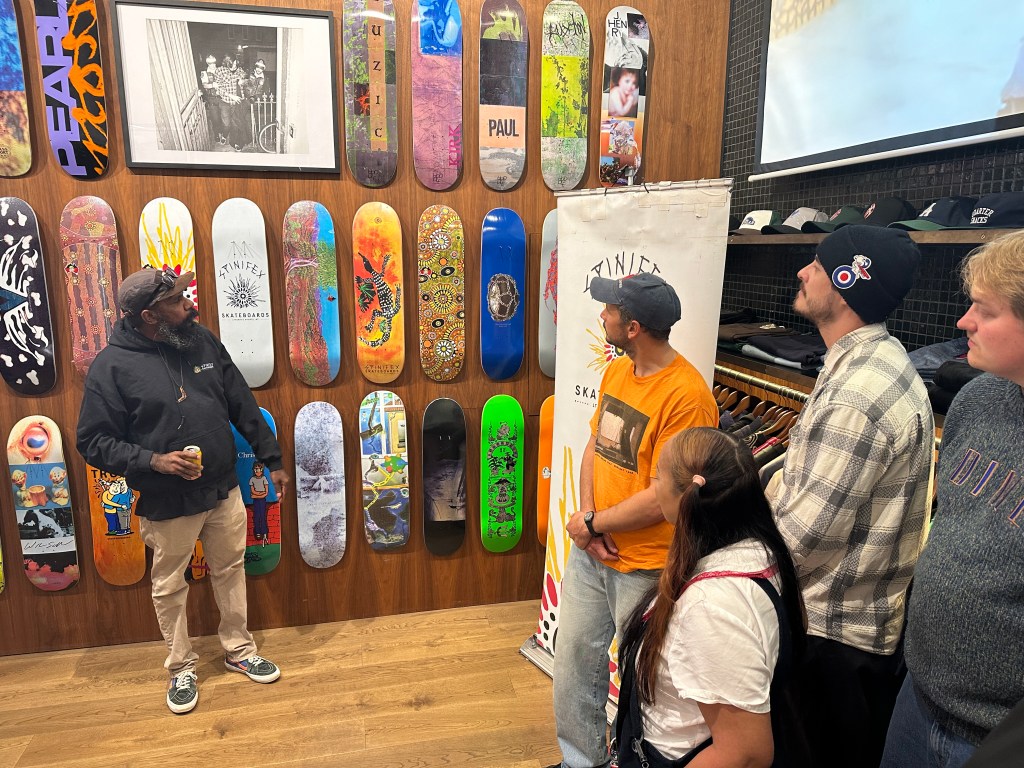 Meet and greet the team event held with founder Nicky Hayes of the Spinifex Skateboards company with their latest videos shown on screen.