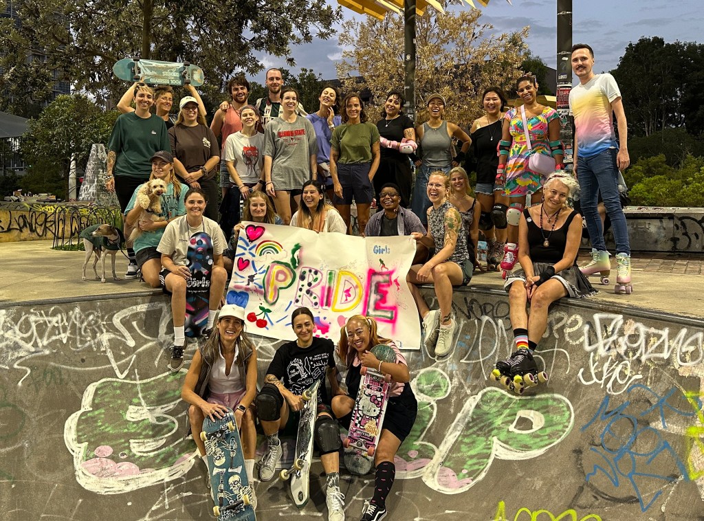 Pride Skate Event to celebrate Queer skaters and allies during Mardis Gras 2025. Sydney Skatepark, Sydney Park. 24th February. 6-8pm. Sponsor. Co-hosted by Skate with Me Sydney, Respect is Rad, and Foenix Cruisers with arts activation including Matilda Holmes from Til June and Jane Gillings.