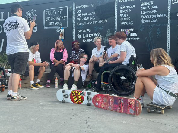 Panel with Lucy Adams, Professional Skateboarder and Skateboard GB, Marie Mayassi from Melanin Gals and Pals, Omi and Stacey from Trans Skaters, Amber Edmundson from New Wave Skate UK and Dr Indigo Willing from Respect is Rad. Convened by Amber Edmundson.