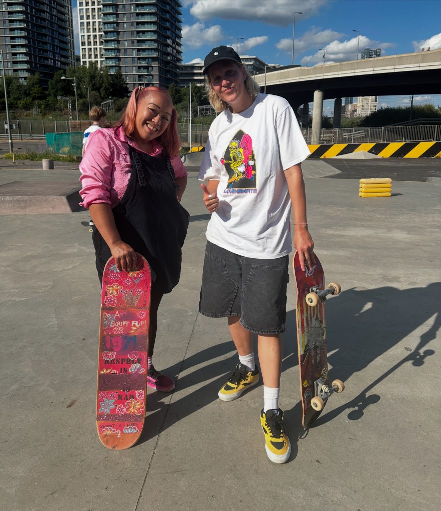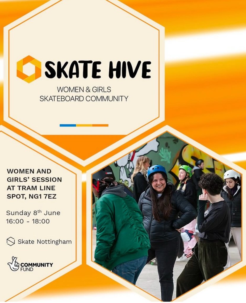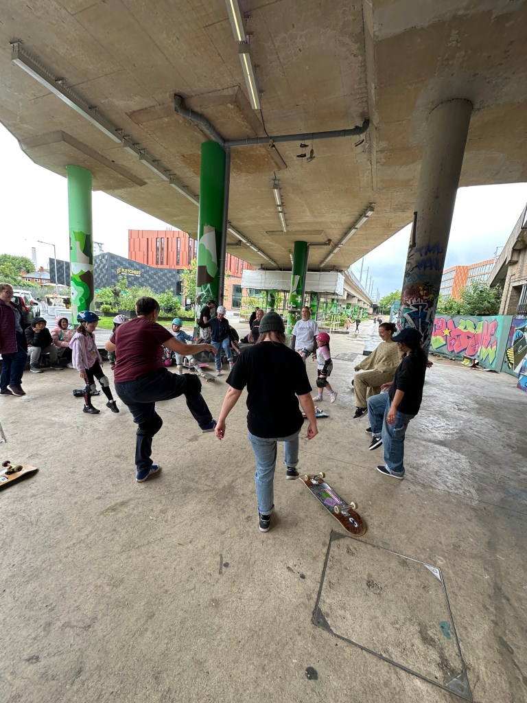 Skate Notthingham – Meet and roll at Skate Hive Session with Jo Wardle and Dr Indigo Willing. The Tramline Spot. 8 June 2025.
