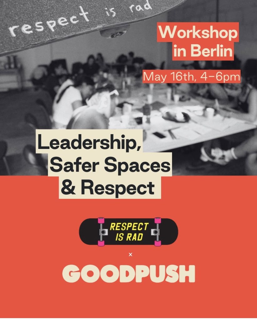 Skateistan (2025) ‘We Lead and We Discover Together: Leadership in Skateboarding’, Talk and workshop. Co-presented by Respect is Rad x Goodpush x SSHRED. 16 May 2025. Berlin, Germany